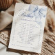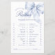 This elegant game features a charming blue bow perfect for a "something blue" bridal shower. Designed in soft pastel watercolor, it combines romantic handwritten script with trendy whimsical elements. Ideal for a dusty blue bridal shower.