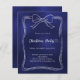 For a Christmas party with family and friends.. Decorated with a white simple hand-drawn bow. Personalize and add the details. Christmas party with a heart. A navy blue, uneven colored background.