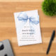 A clear, transparent background, decorated with a large light blue bow. Personalize and add a name and party details.