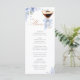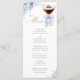 An elegant bridal shower menu card featuring a refined martini glass illustration with a soft blue bow and delicate floral accents.