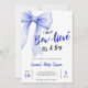 Welcome your bundle of joy in style with this blue bow baby shower invitation for baby boys. It's a fun and cute way to celebrate your son's big debut. Personalize it with your event details for a party that will be truly un-bow-lievable.