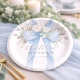 Blue Bow Floral Baby Boy Shower Paper Plates