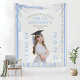 Arrived quickly and looked great! Had to steam out the wrinkles from shipping but it was easy to do! I added gold curtains to the sides to extend the photo backdrop area. I changed the color to royal blue! Perfect! The printing looked just like the photo online! Excellent job!