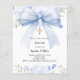 Blue bow florals boy Baptism invitation