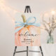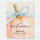A cute pumpkin, tied with an elegant blue ribbon, highlights this boy baby shower foam board Welcome sign, featuring the mother-to-be's name and baby shower date. (Available in pink and ivory, too.) MATCHING items in our collection.