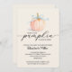 A cute little pumpkin tied with a blue ribbon highlights these boy baby shower soft ivory invitations with "A little pumpkin is on his way" and your details in chic lettering. (Available in pink and ivory, too.) MATCHING items in our collection.