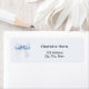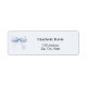 A light blue colored background decorated with a large bow. Personalize and add your name and address. Black letters.
