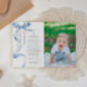 Blue Bow & Rosary Photo First Holy Communion Invitation