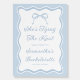 Welcome guests to your "She’s Tying the Knot" celebration with this elegant, personalized Blue Bow Tying The Knot Bachelorette Party Welcome Sign. Perfect for a bow-themed bachelorette party, this sign complements popular bachelorette party themes like "she tying the knot theme" and "tie the knot bachelorette theme." Designed for something blue bachelorette party vibes, it’s ideal for blue bachelorette party themes. Add a touch of charm to your "bow bachelorette theme" with this stylish, memorable sign.