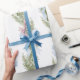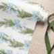 This wrapping paper features a soft, elegant design with light blue bows and green pine branches arranged in a repeating pattern. The delicate watercolor-style illustration gives it a serene and festive feel, ideal for a winter or Christmas theme. The white background enhances the airy and clean aesthetic, making it perfect for subtle and sophisticated gift wrapping.