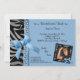 Blue Bow With Silver Pearls And Zebra Stripes Invitation