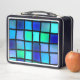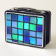 This lunch box has a blue box pattern on it.