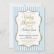 Blue Boy Baby Shower Invitation Elegant Stripes