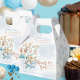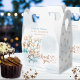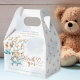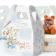 Celebrate in style with our matching party favor boxes from the "We Can Bearly Wait Collection." These adorable boxes feature a high-flying teddy bear in a vintage plane, trailing balloons in shades of blue, teal, and brown. Painted in charming watercolor with a blue sky and fluffy clouds backdrop, they are perfect for an expectant mom of a baby boy. Crafted from high-quality, eco-friendly materials, these boxes are as sturdy as they are stylish. Easy to assemble and close, you can even personalize further with a matching ribbon for that extra touch of elegance. Add a whimsical touch to your baby shower and show your appreciation with these delightful favor boxes, ensuring every guest leaves with a smile.