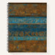 Horizontal stripes in shades of blue, interspersed with horizontal blocks of bronze and old gold, giving this notebook a weathered, oxidized, grunge appearance.