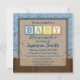 Blue brown baby blocks shower invitations