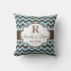 Blue & Brown Chevron Stripes Wedding Throw Pillow