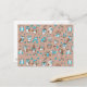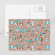 Blue brown cute owls pattern postcard