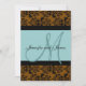 Blue Brown Damask Monogram Wedding Invitation