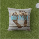 Blue Brown Faux Weathered Wooden Plank Pattern Outdoor Pillow