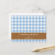 Blue brown gingham lined custom name recipe card