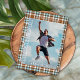 Blue Brown Plaid Gold Foil Graduation Announcement