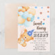 Blue Brown Sweet Bear with Balloons Boy's Birthday Invitation