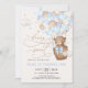 Blue Brown Teddy Bear Hot Air Balloon Boy Birthday Invitation
