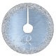Easily personalize this trendy chic Christmas tree skirt design featuring pretty silver sparkling faux glitter on a blue brushed metallic background.