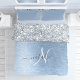 Blue Brushed Metal Silver Glitter Monogram Name Duvet Cover