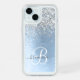 Blue Brushed Metal Silver Glitter Monogram Name iPhone 15 Case