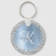 Easily personalize this trendy chic keychain design featuring pretty silver sparkling faux glitter on a blue brushed metallic background.