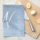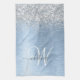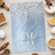 Blue Brushed Metal Silver Glitter Monogram Name Kitchen Towel