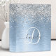 Blue Brushed Metal Silver Glitter Monogram Name Mini Binder