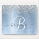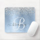 Blue Brushed Metal Silver Glitter Monogram Name Mouse Pad