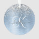 Blue Brushed Metal Silver Glitter Monogram Name Ornament
