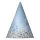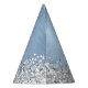 Easily personalize this trendy chic party hat design featuring pretty silver sparkling glitter on a blue brushed metallic background.