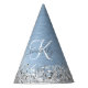 Blue Brushed Metal Silver Glitter Monogram Name Party Hat