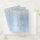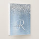 Blue Brushed Metal Silver Glitter Monogram Name Pocket Folder