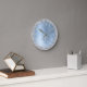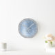 Easily personalize this trendy chic wall clock design featuring pretty silver sparkling glitter on a blue brushed metallic background.