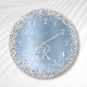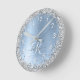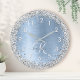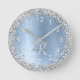Blue Brushed Metal Silver Glitter Monogram Name Round Clock