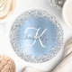 Blue Brushed Metal Silver Glitter Monogram Name Round Paper Coaster