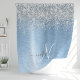 Blue Brushed Metal Silver Glitter Monogram Name Shower Curtain