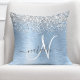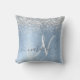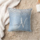 Blue Brushed Metal Silver Glitter Monogram Name Throw Pillow