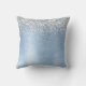 Easily personalize this trendy chic throw pillow design featuring pretty silver sparkling glitter on a blue brushed metallic background.