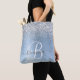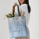 Blue Brushed Metal Silver Glitter Monogram Name Tote Bag