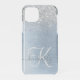 Blue Brushed Metal Silver Glitter Monogram Name Uncommon iPhone Case