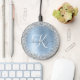Blue Brushed Metal Silver Glitter Monogram Name Wireless Charger