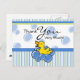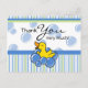 Blue Bubble Ducky Baby Shower Thank You Postcards Adorable baby shower thank you notes featuring happy little duck with blue bubbles and striped background accents. Personalized text. Great shower gift! Coordinated stickers, baby shower invitations, postage stamps and keepsake buttons also available PinkInkArt original!