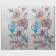 Blue Budgie Roses art flowers Watercolor Wrapping Paper